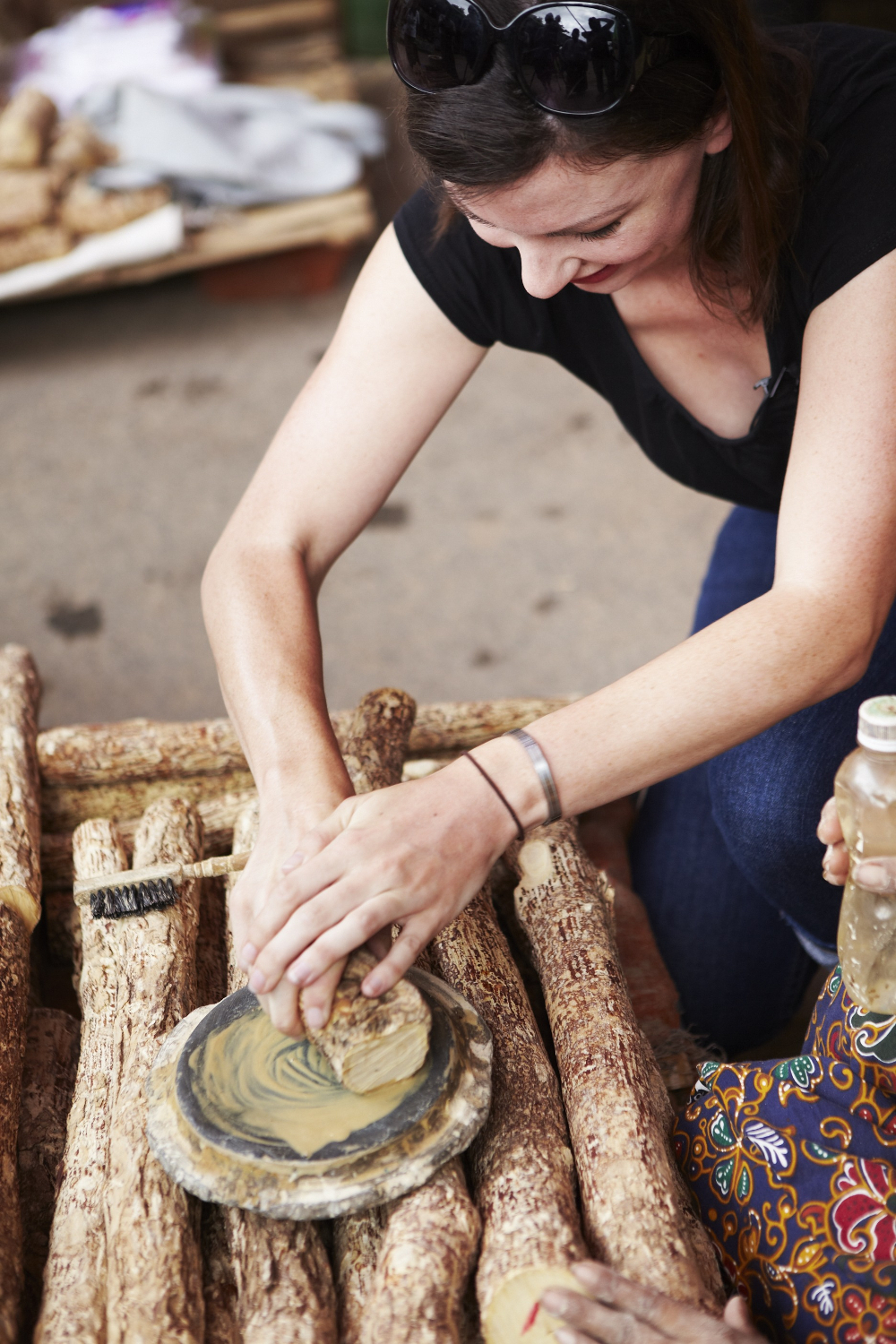 Myanmar Thanaka / Thanaka Burma Myanmar Thuta Travel | Thuta Travel : Application du thanaka, un cosmétique birman naturel.